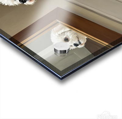 ABOUT THIS ARTWORK: CURIOUS WHITE BICHON FRISE PUPPY DISCOVERS MIRROR FOR FIRST TIME