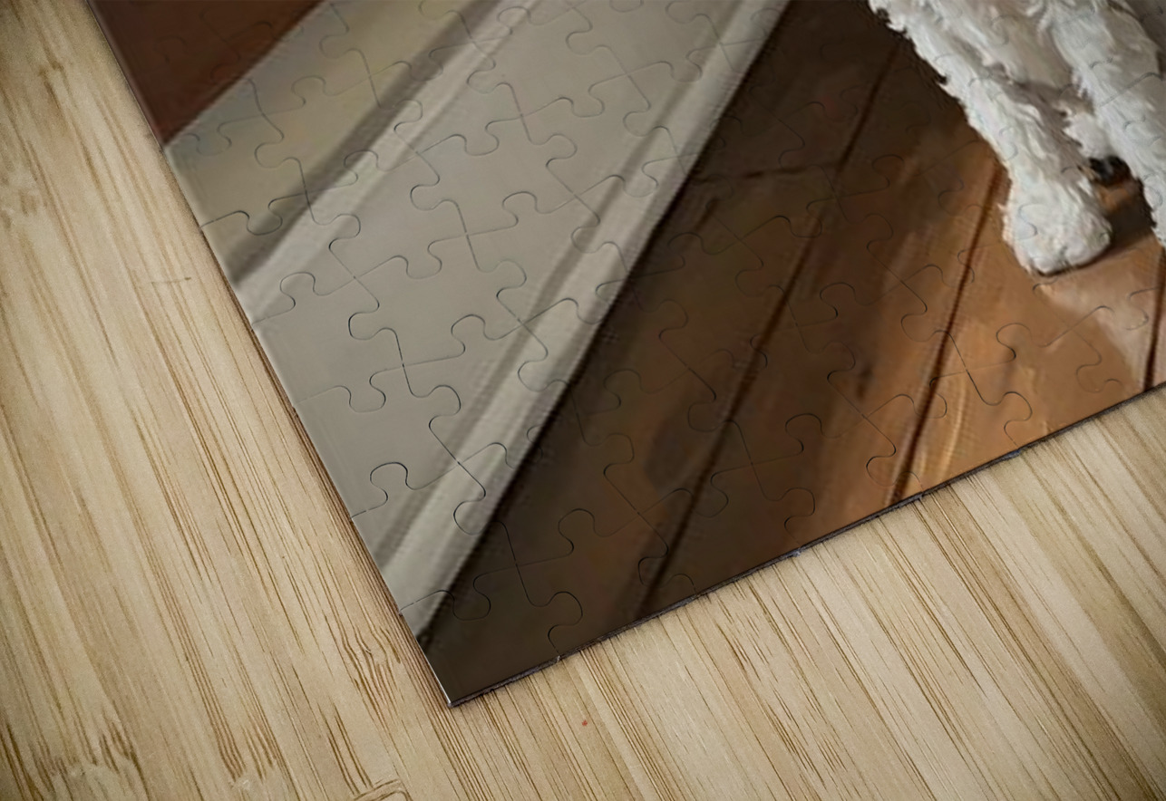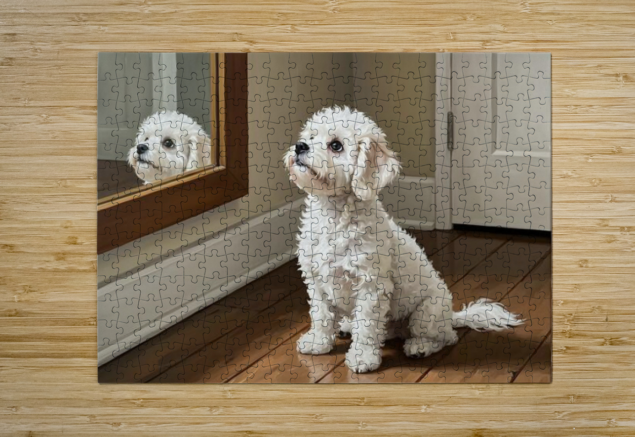 Curious White Bichon Frise Puppy Discovers Mirror For First Time Puppy Prints Puzzle printing
