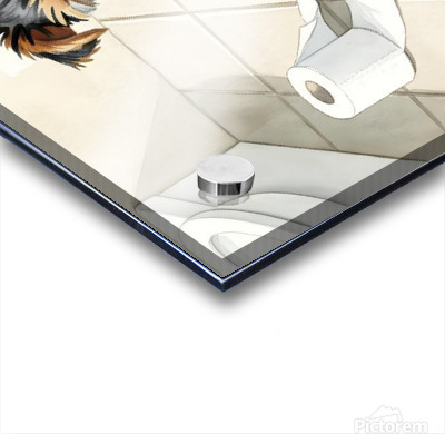 ABOUT THIS ARTWORK: BROWN YORKSHIRE TERRIER PUPPY WITH UNROLLED TOILET PAPER TRAIL