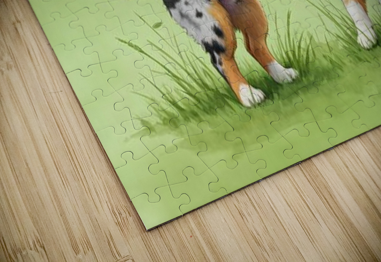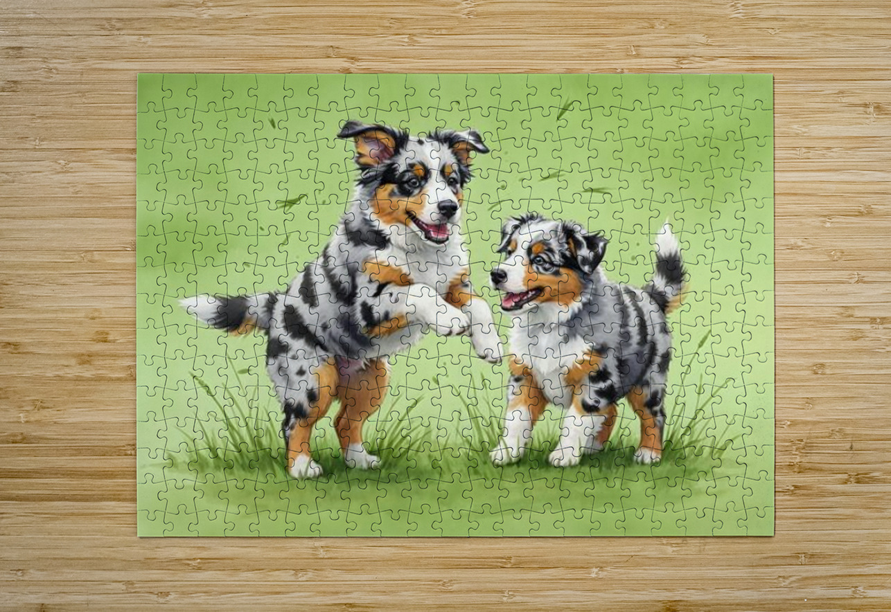 Blue Merle Australian Shepherd Puppies Playing Together Puppy Prints Puzzle printing