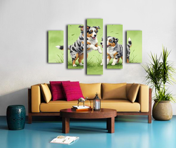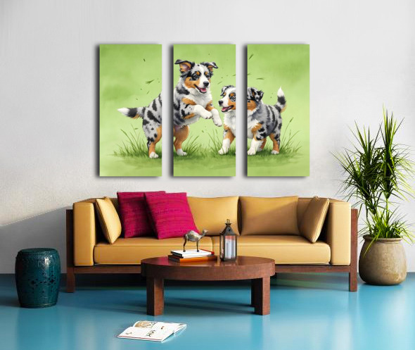 Blue Merle Australian Shepherd Puppies Playing Together Canvas print