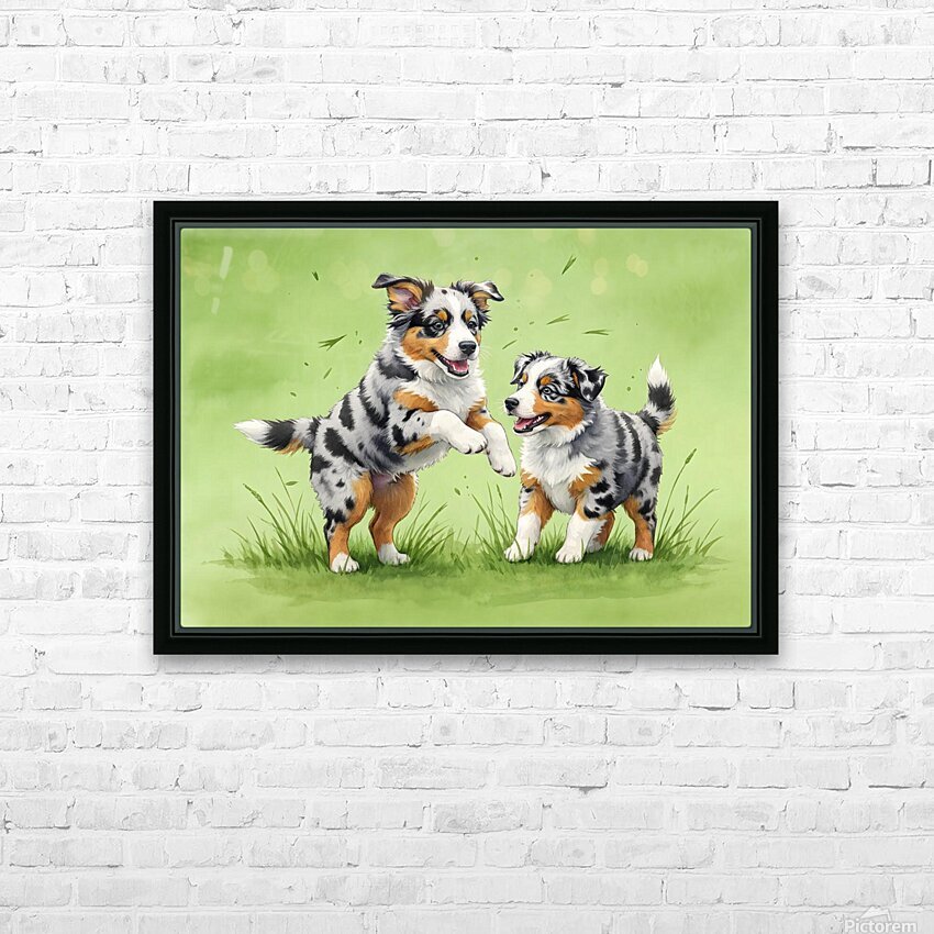 Blue Merle Australian Shepherd Puppies Playing Together Frame print