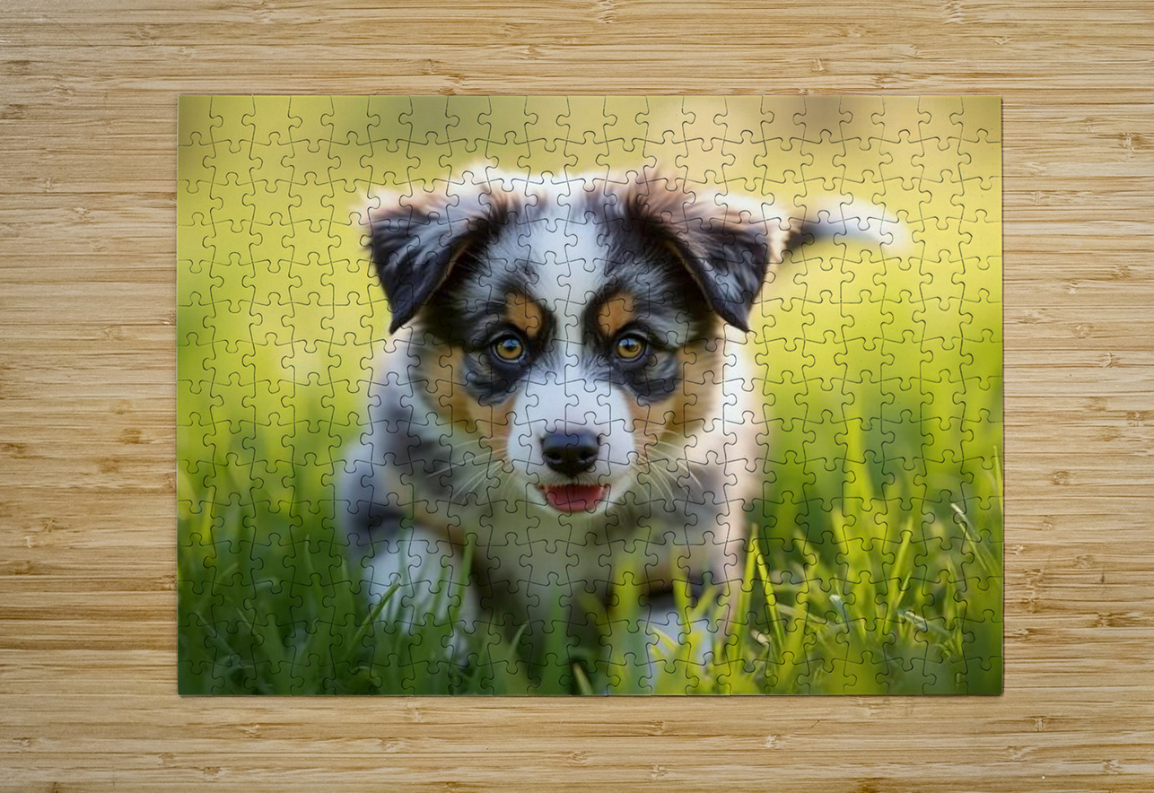 Blue Merle Australian Shepherd Puppy Ready To Play Hide And Seek Puppy Prints Puzzle printing