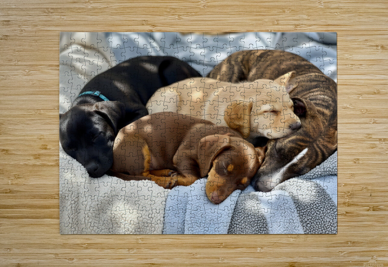 Sleepy Brown Dachshund Puppy Cuddling With Tired Siblings Puppy Prints Puzzle