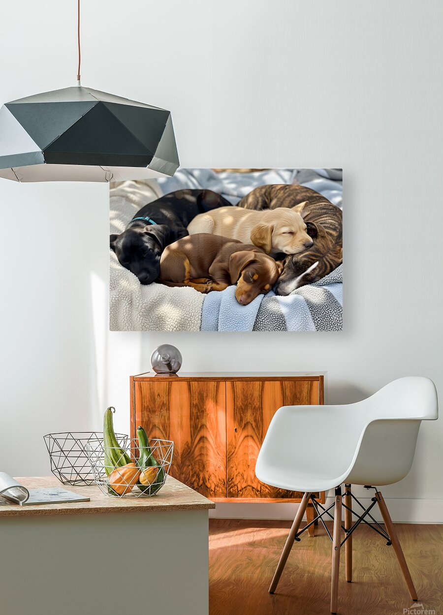 Sleepy Brown Dachshund Puppy Cuddling With Tired Siblings Puppy Prints Puzzle printing
