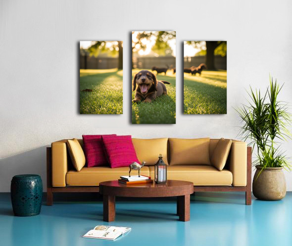 Brown Dachshund Puppy Waking Up In Sunny Garden Canvas print