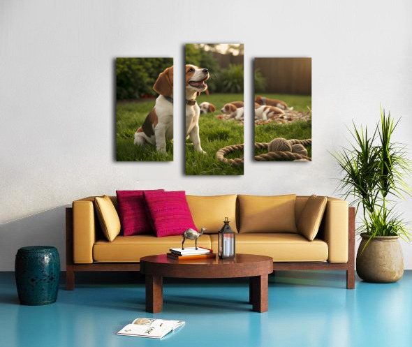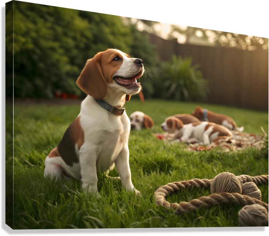 Beagle Puppy Enjoys Victory After Tug-Of-War Fun Canvas print