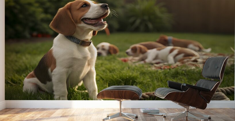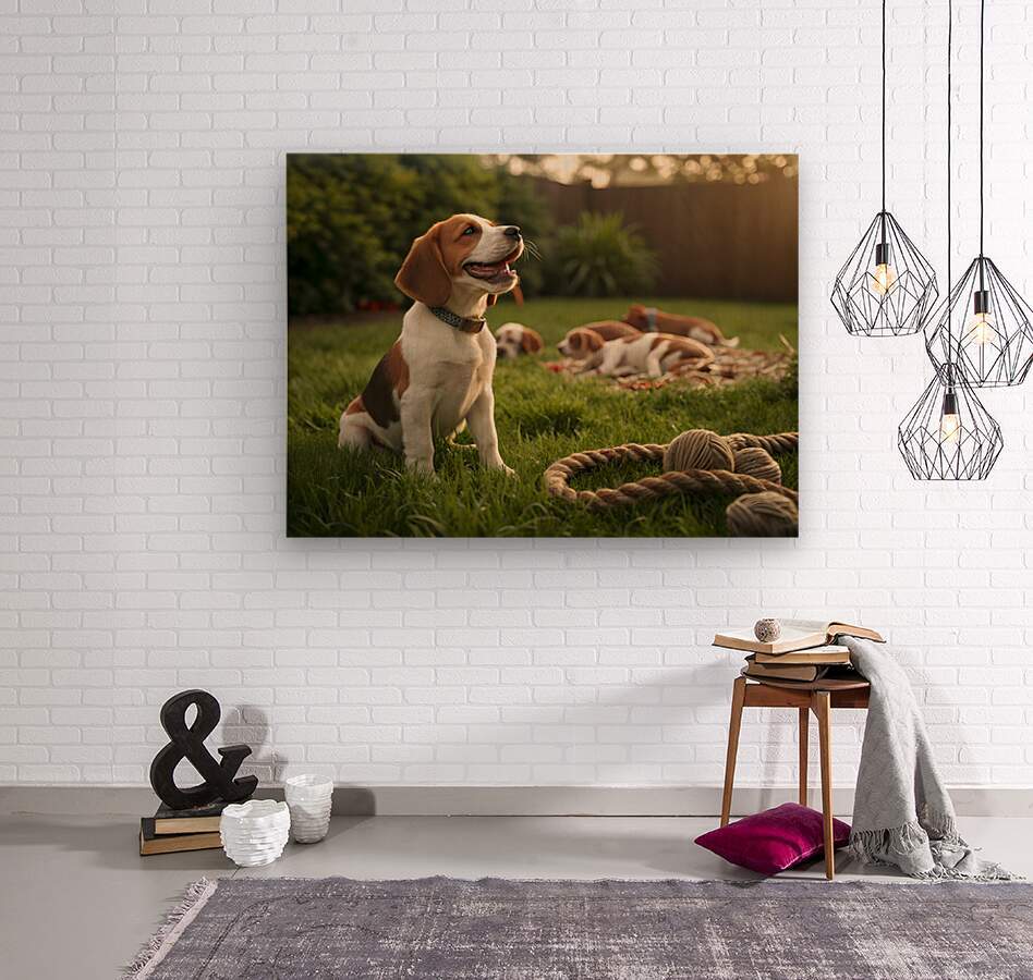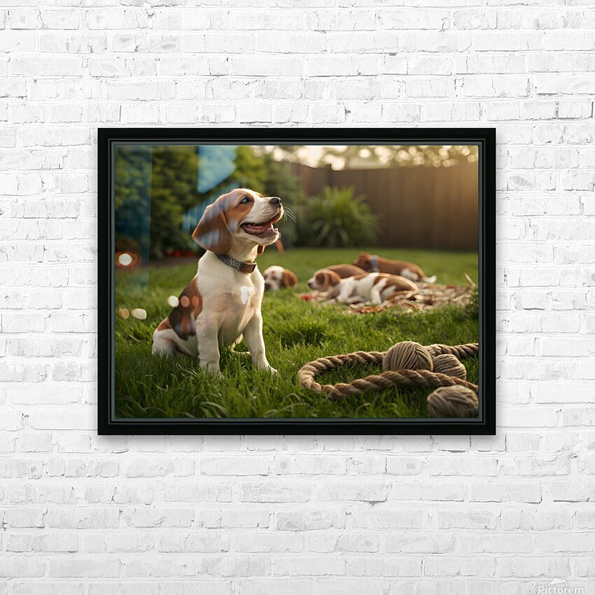 Get this artwork "Beagle Puppy Enjoys Victory After Tug-Of-War Fun" in a framed print.