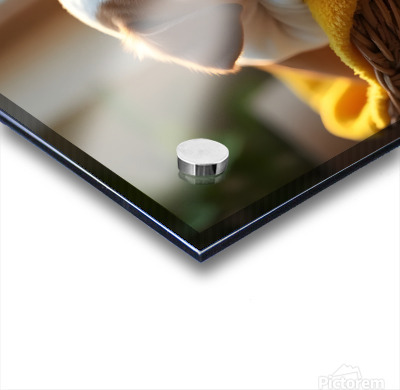 Get this artwork "Bulldog Puppy Sleeps Peacefully In Wicker Basket" in a framed print.