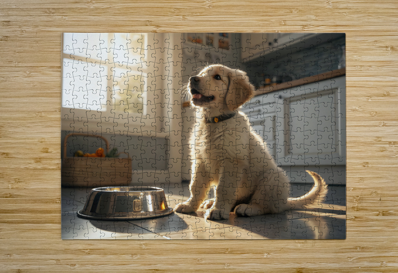 Golden Retriever Puppy Discovers Empty Food Bowl Puppy Prints Puzzle printing