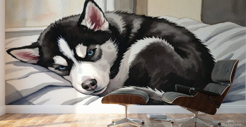 ABOUT THIS ARTWORK: SLEEPY SIBERIAN HUSKY PUPPY NAPPING IN SUNBEAM