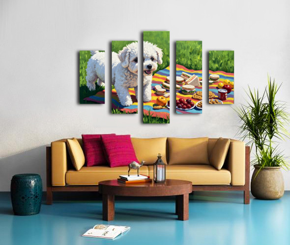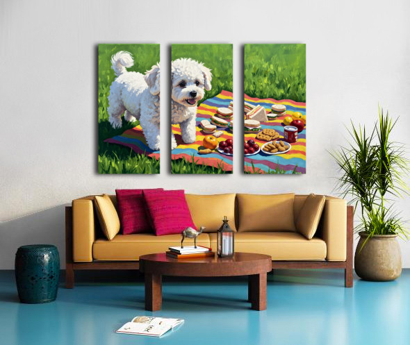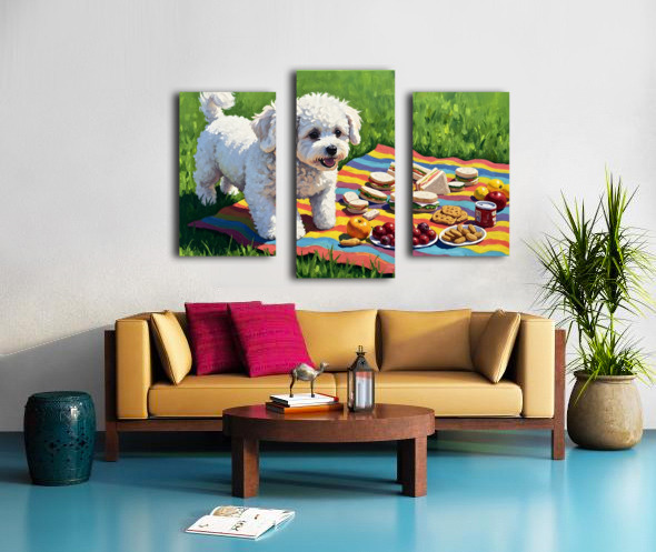 Bichon Frise Puppy Discovers Picnic Spread Canvas print