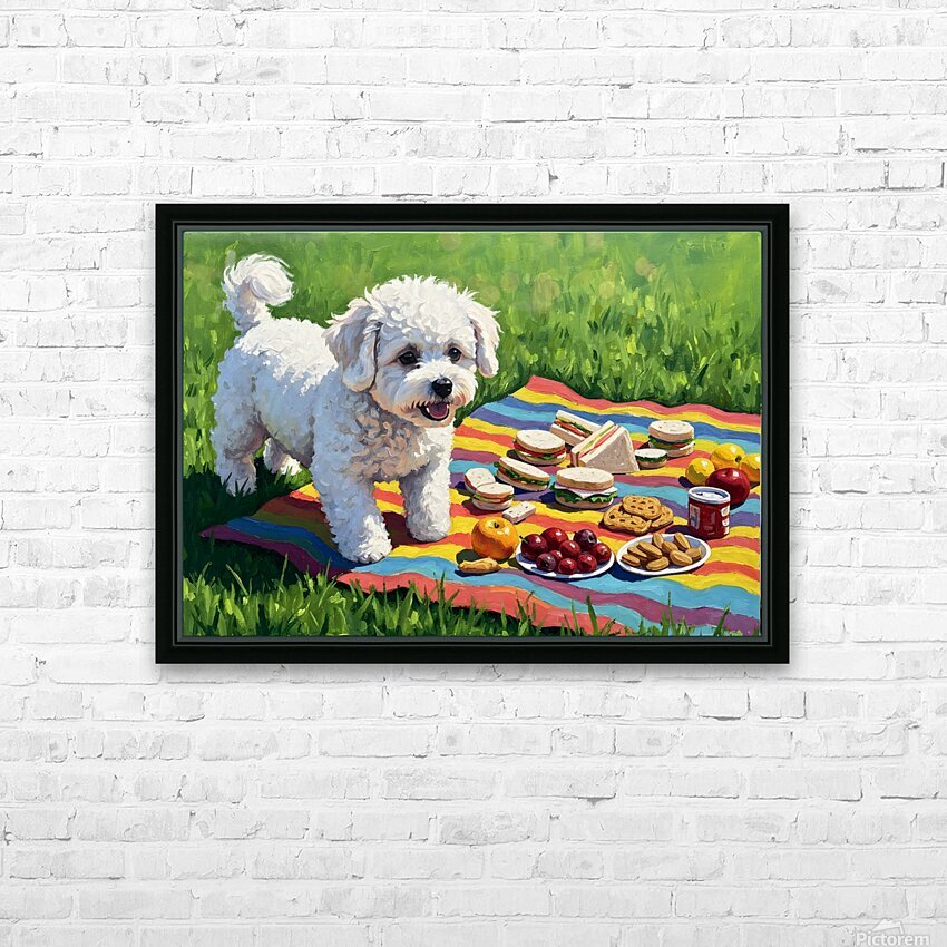 Bichon Frise Puppy Discovers Picnic Spread Picture Frame Printing