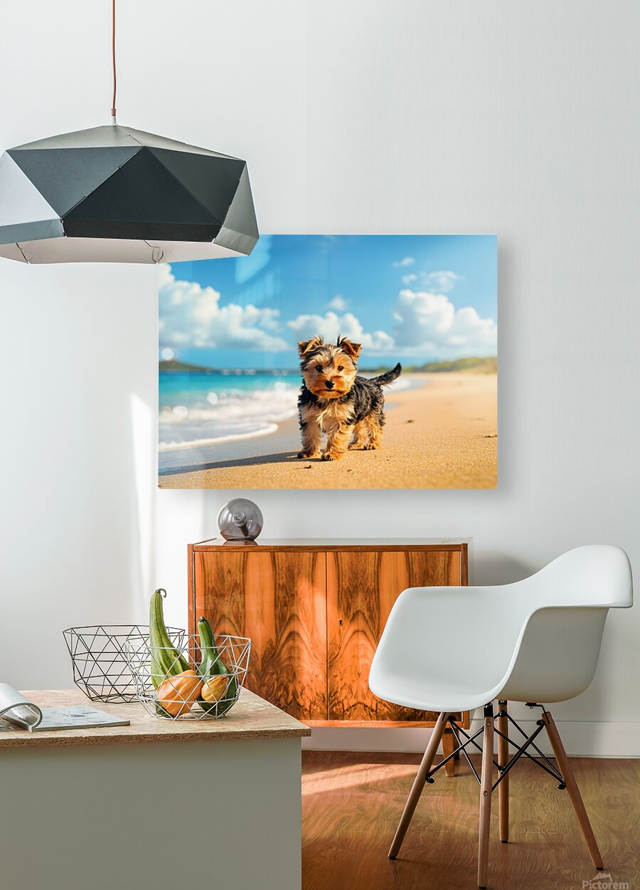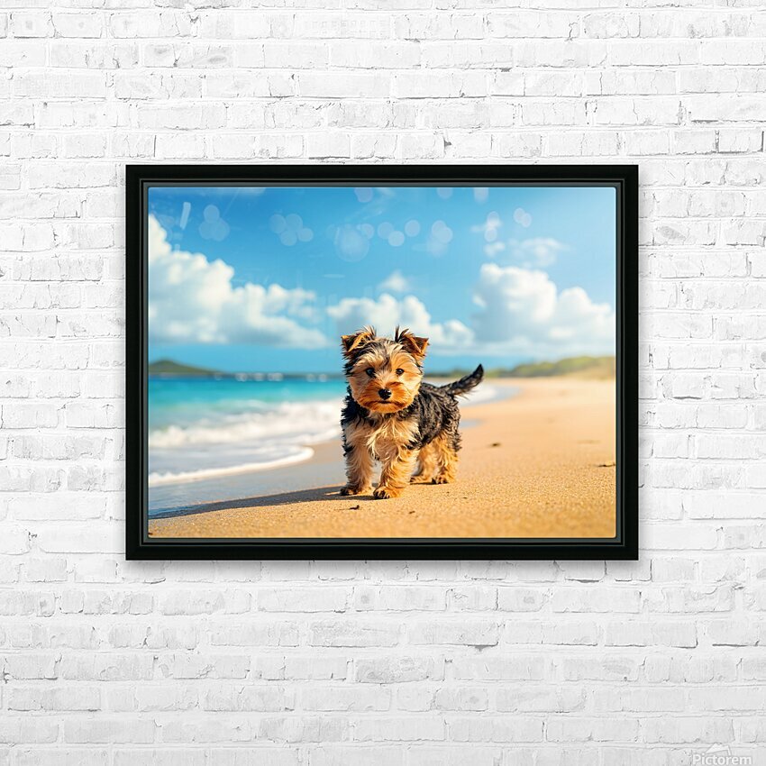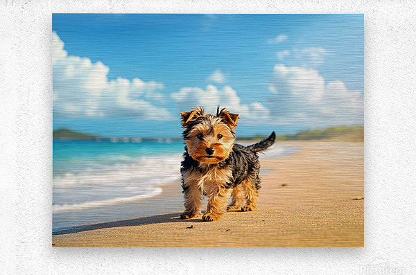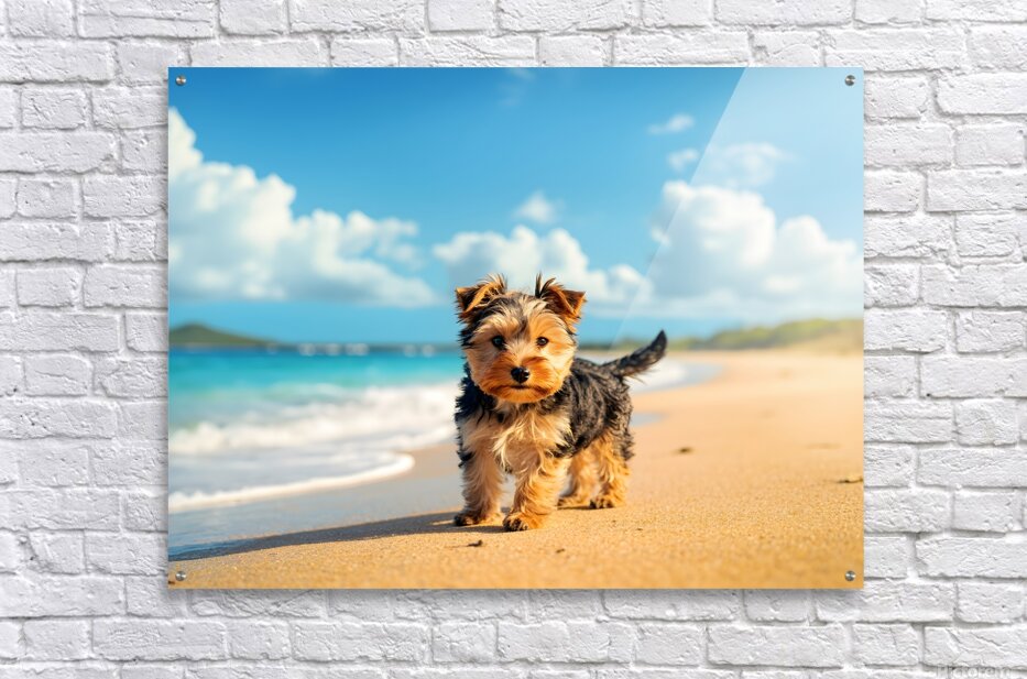 Get this artwork "Yorkshire Terrier Puppy Discovers The Beach" in a framed print.