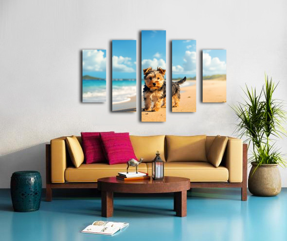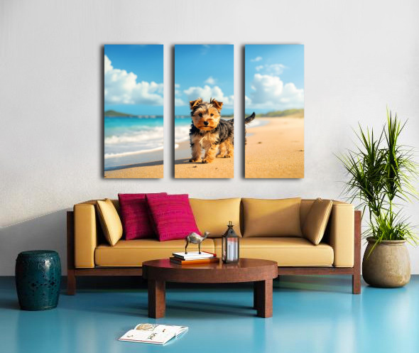 Yorkshire Terrier Puppy Discovers The Beach Canvas print