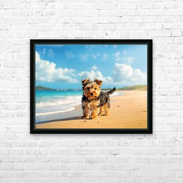 Yorkshire Terrier Puppy Discovers The Beach Frame print
