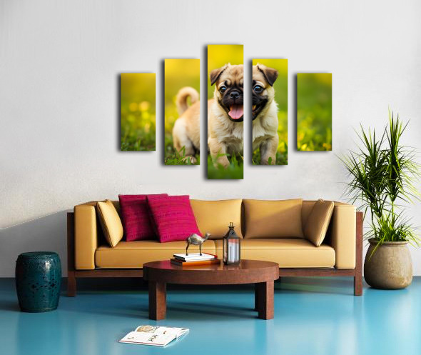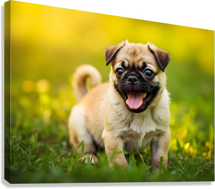 Pug Puppy Successfully Completes Stay Command Canvas print