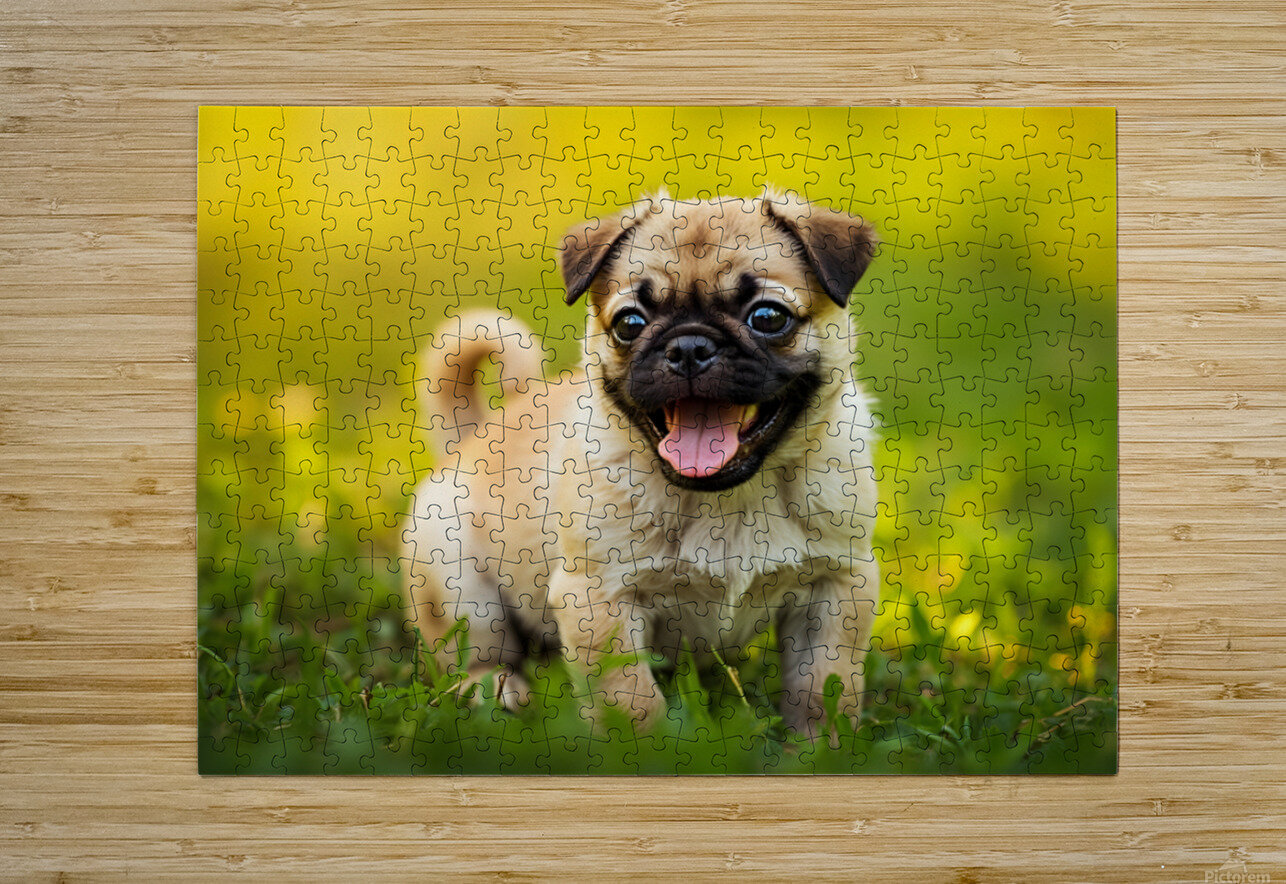 Pug Puppy Successfully Completes Stay Command Puppy Prints Puzzle printing