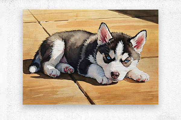 ABOUT THIS ARTWORK: SIBERIAN HUSKY PUPPY BASKING IN GOLDEN SUNLIGHT