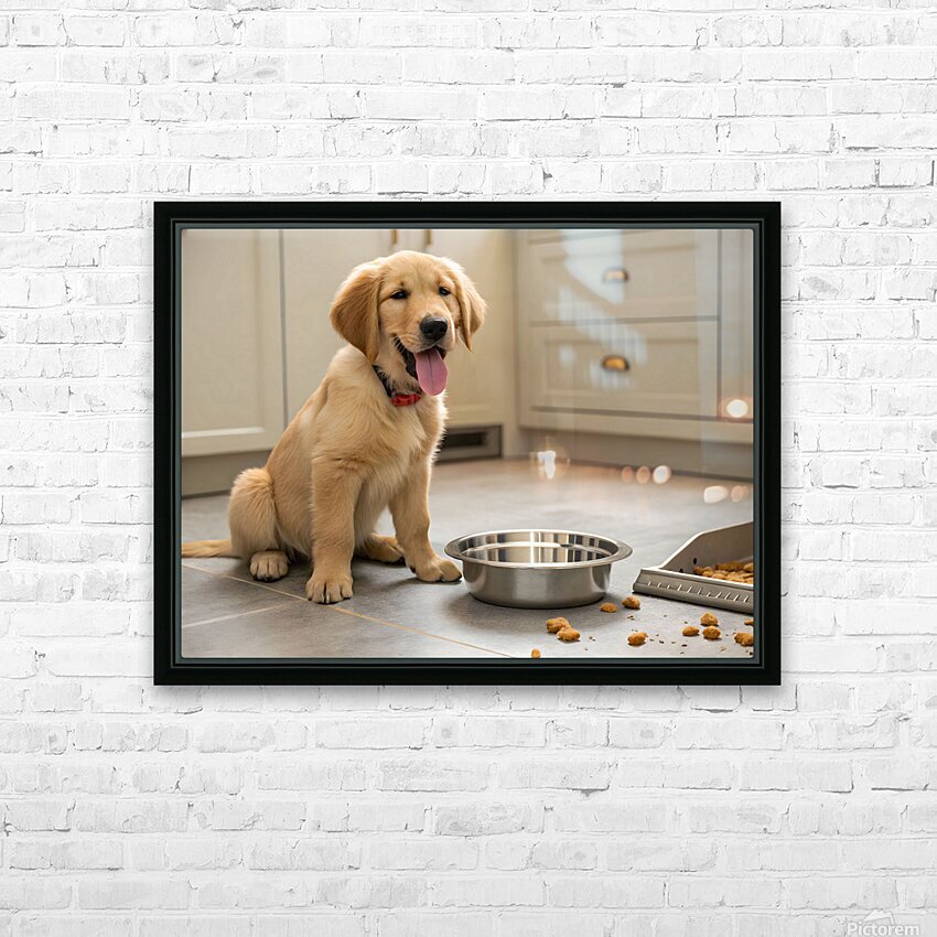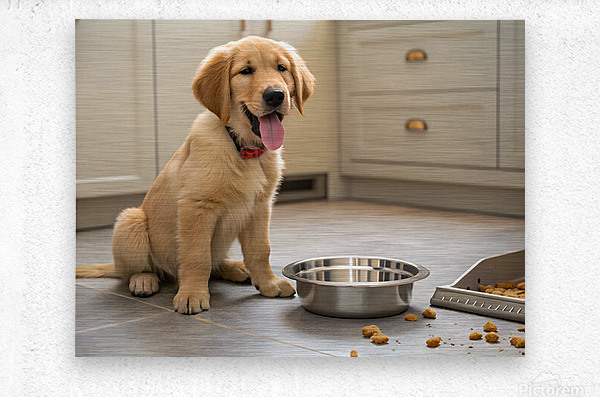 Get this artwork "Satisfied Golden Retriever Puppy After Finishing Meal" in a framed print.