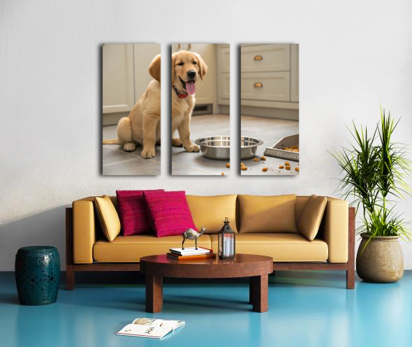 Satisfied Golden Retriever Puppy After Finishing Meal Canvas print