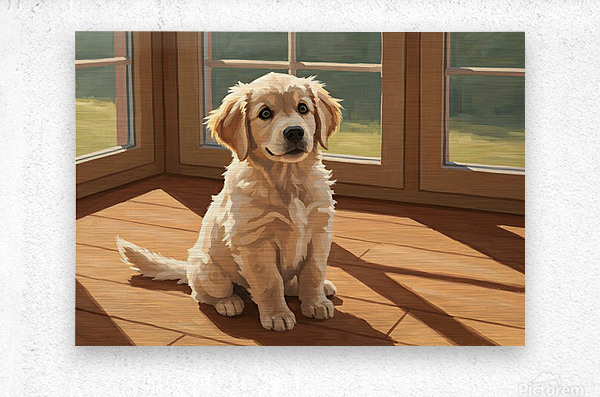 ABOUT THIS ARTWORK: GOLDEN RETRIEVER PUPPY SITS ALERT AND READY FOR ADVENTURE
