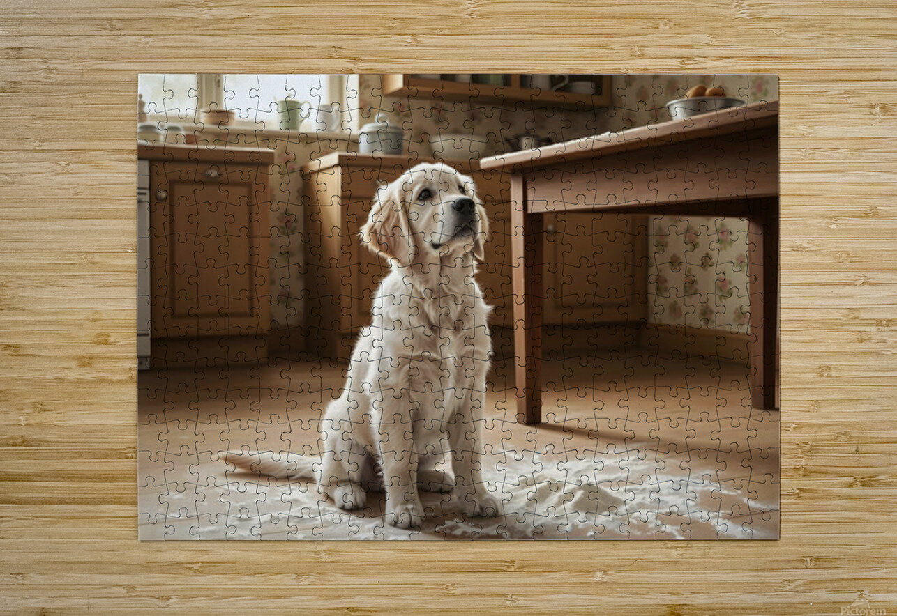 Hopeful Puppy After Kitchen Adventure Ends Puppy Prints Puzzle printing