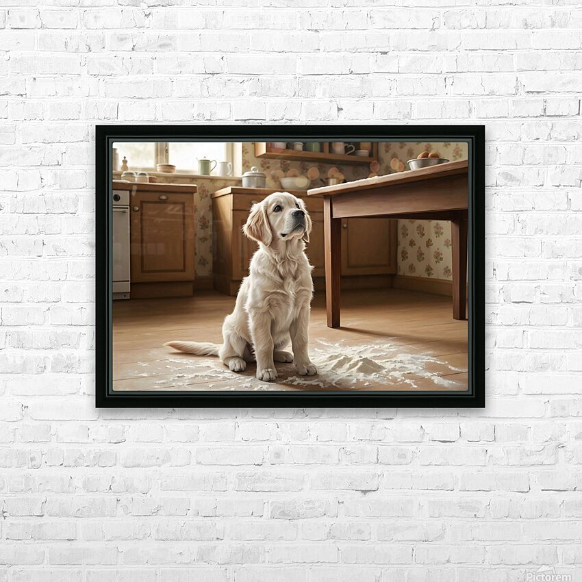 Get this artwork "Hopeful Puppy After Kitchen Adventure Ends" in a framed print.
