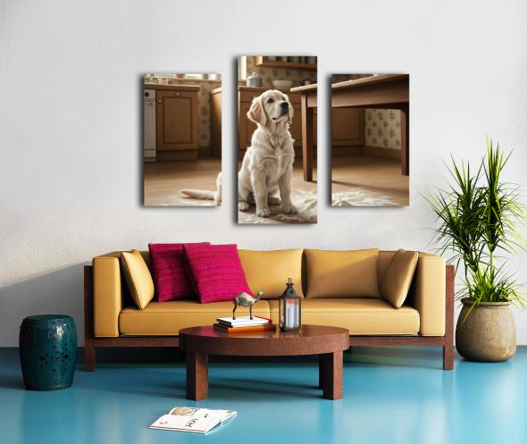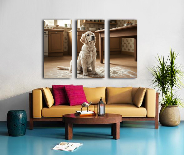 Hopeful Puppy After Kitchen Adventure Ends Canvas print