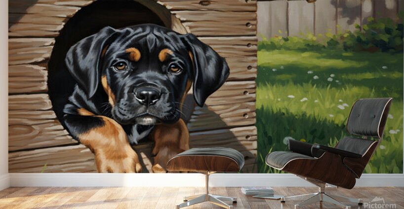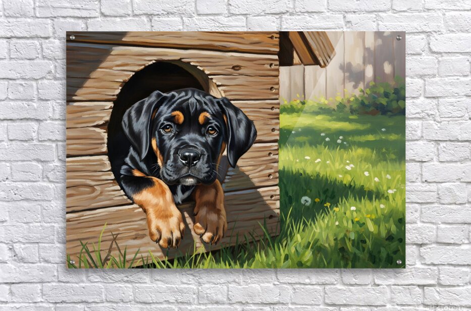 Get this artwork "Curious Cane Corso Puppy Peeks From Doghouse" in a framed print.