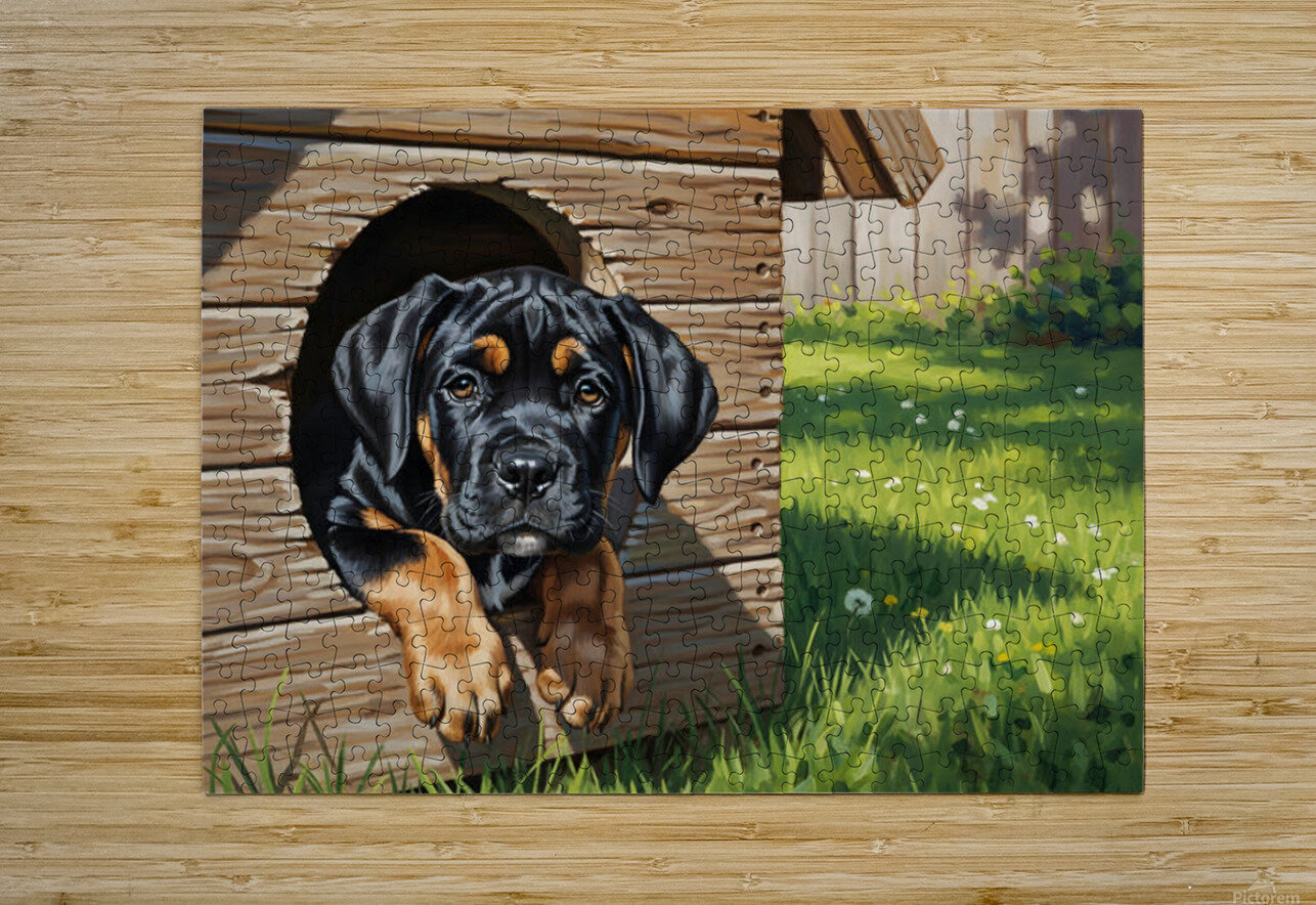 Curious Cane Corso Puppy Peeks From Doghouse Puppy Prints Puzzle printing