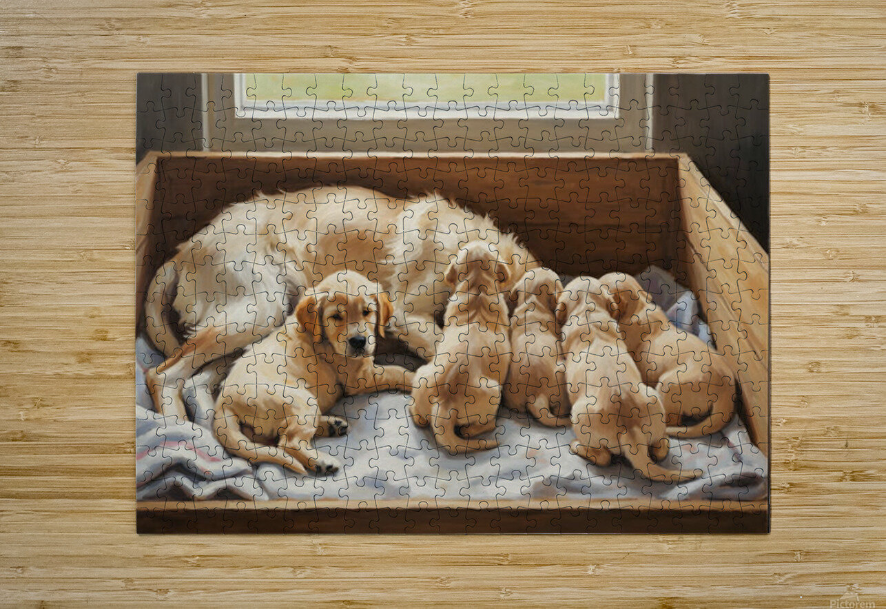 Golden Retriever Puppy Finds Comfort With Mother Puppy Prints Puzzle