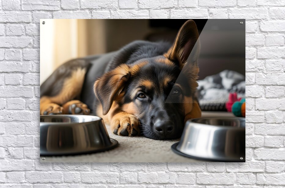 ABOUT THIS ARTWORK: DROWSY GERMAN SHEPHERD PUPPY RESTING AFTER EATING
