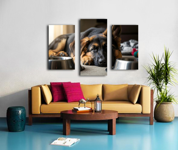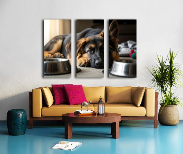 Drowsy German Shepherd Puppy Resting After Eating Canvas print