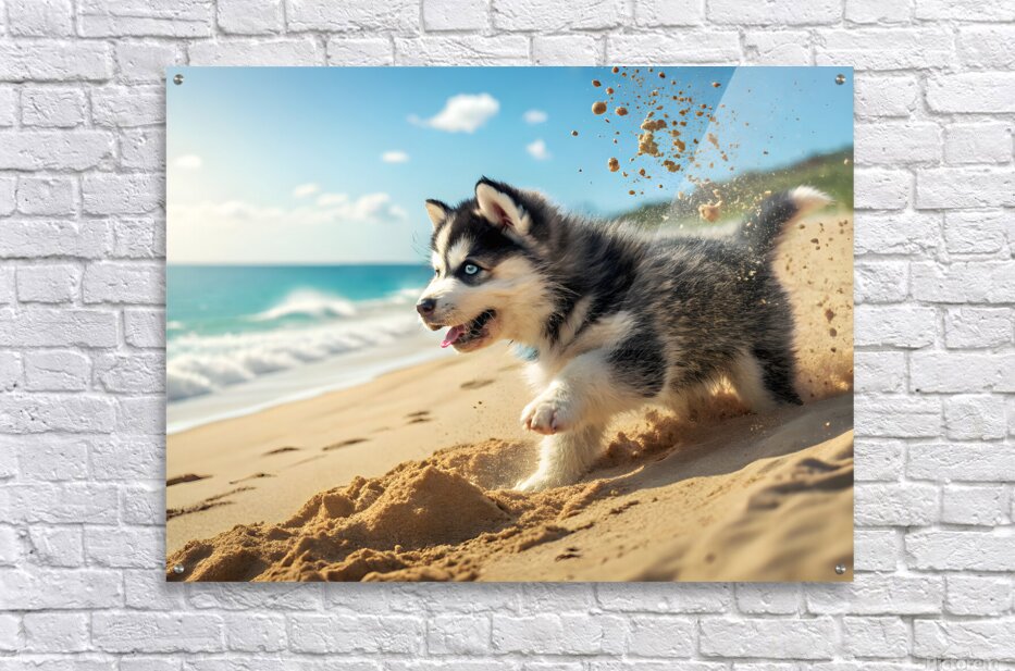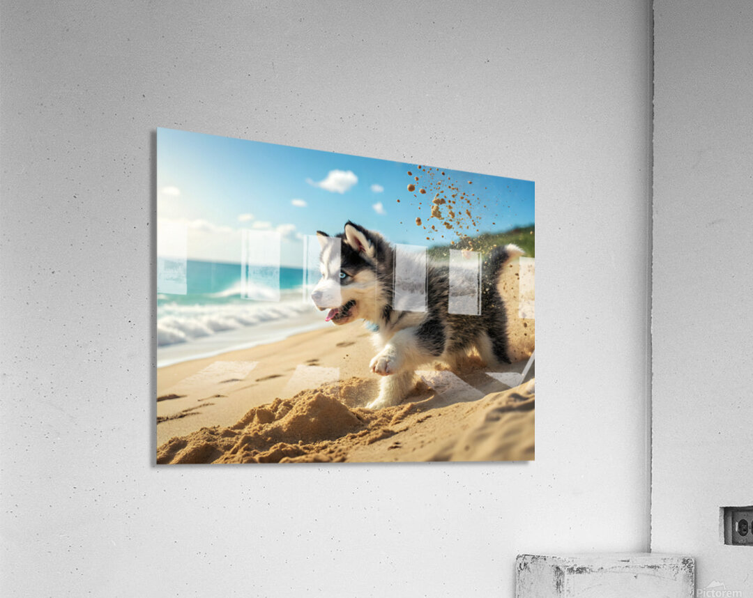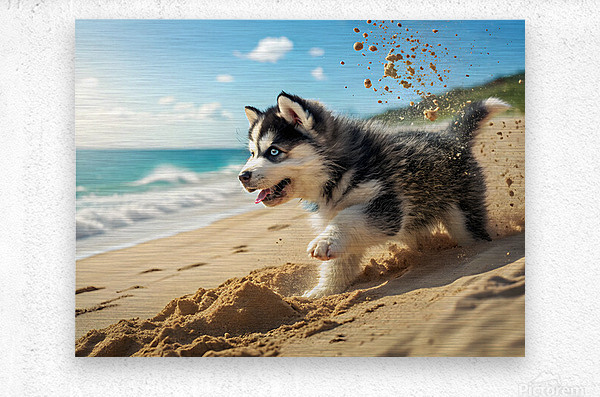 Get this artwork "Siberian Husky Puppy Discovers Sandy Beach Fun" in a framed print.