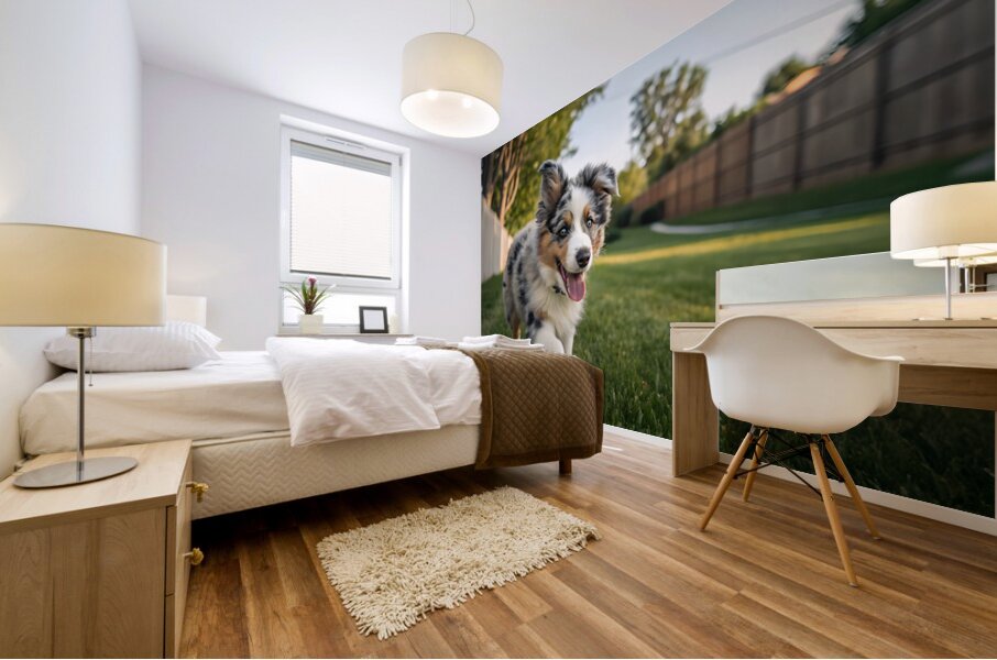 ABOUT THIS ARTWORK: AUSTRALIAN SHEPHERD PUPPY GETS THE ZOOMIES IN BACKYARD