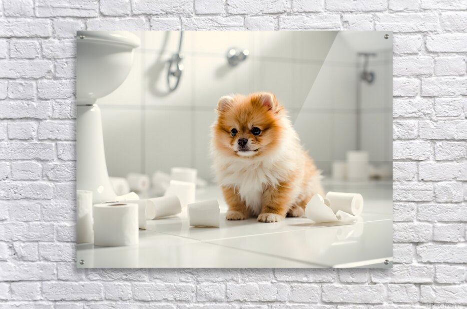 Pomeranian Puppy Discovers Toilet Paper Roll Picture Frame Printing