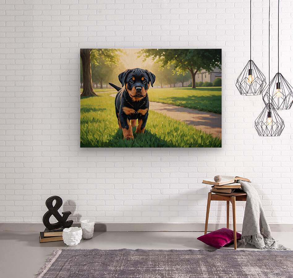 ABOUT THIS ARTWORK: YOUNG ROTTWEILER PUPPY EXPLORES THE PARK ALONE
