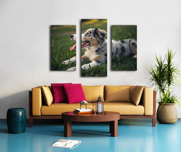 Tired Australian Shepherd Puppy Rests After Zoomies Canvas print
