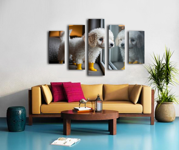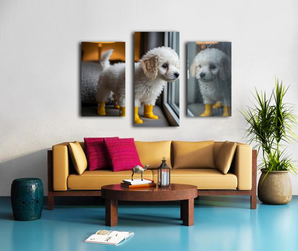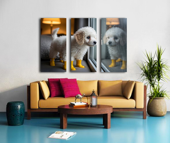 Poodle Puppy Discovers Rainy Day Adventure Canvas print