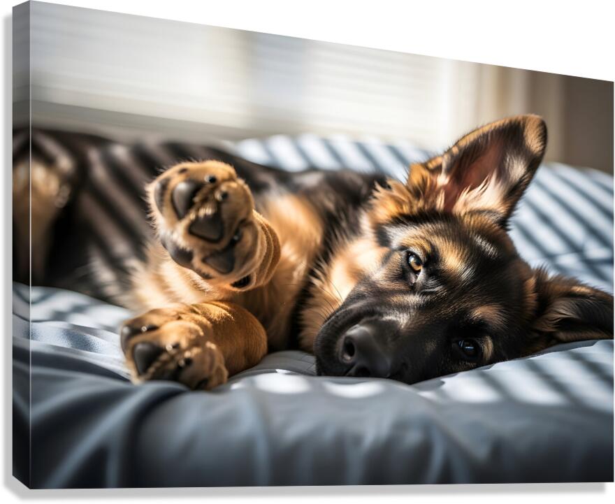 German Shepherd Puppy Waking Up From Nap Canvas print