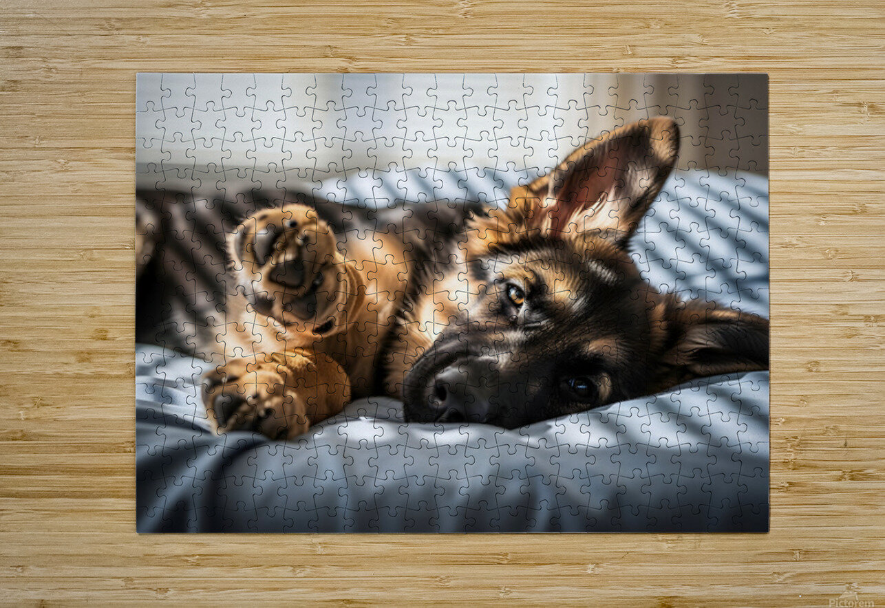 German Shepherd Puppy Waking Up From Nap Puppy Prints Puzzle printing