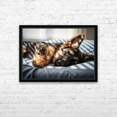 German Shepherd Puppy Waking Up From Nap Frame print