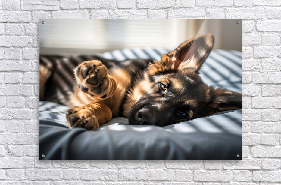 Get this artwork "German Shepherd Puppy Waking Up From Nap" in a framed print.