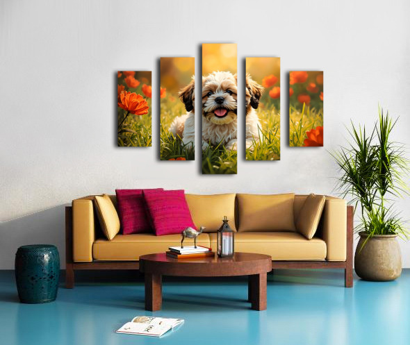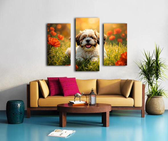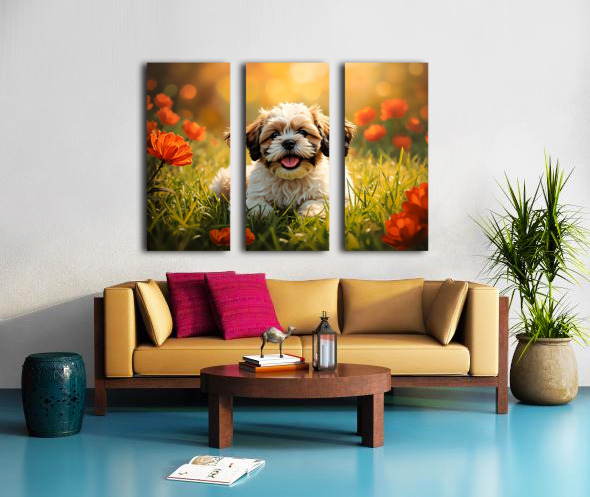 Happy Shih Tzu Puppy Rests After First Adventure Canvas print