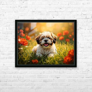 Get this artwork "Happy Shih Tzu Puppy Rests After First Adventure" in a framed print.