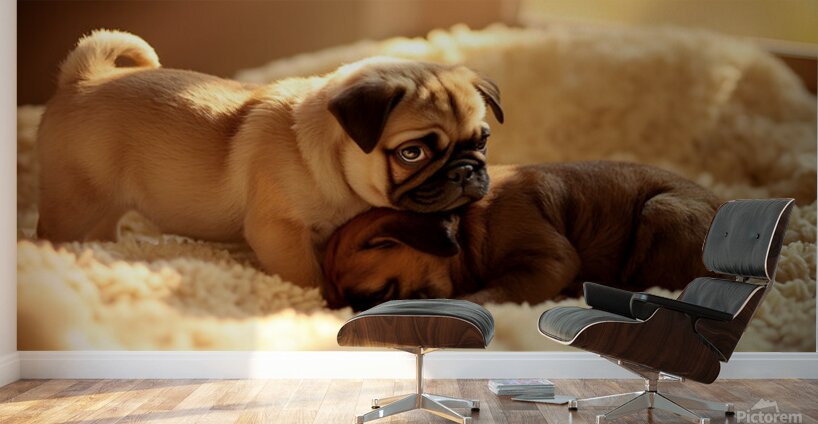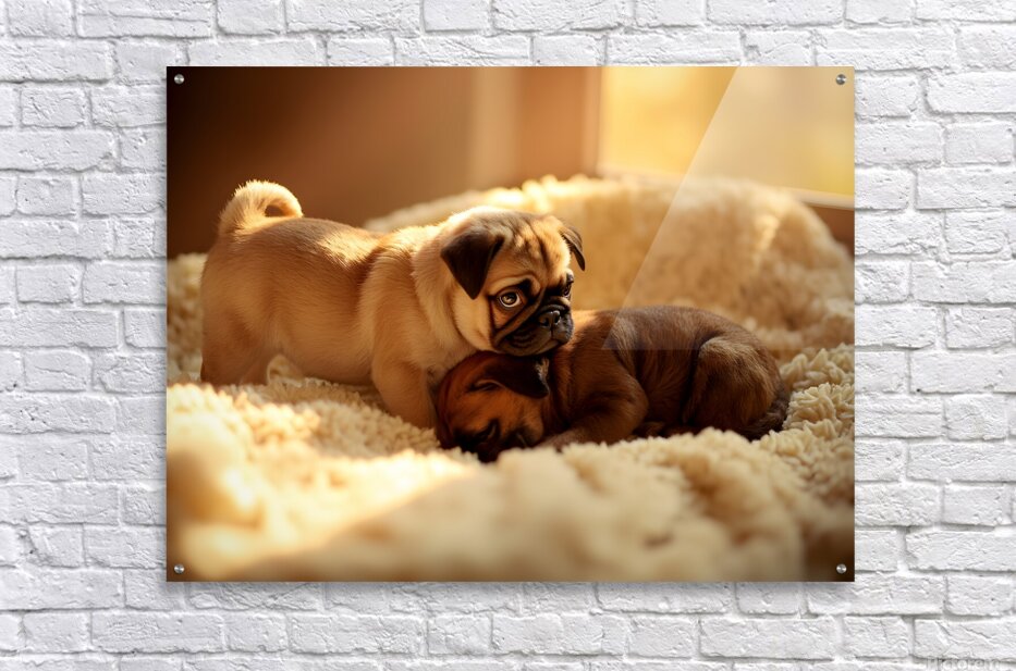 Get this artwork "Pug Puppy Gently Wakes Sleeping Friend" in a framed print.
