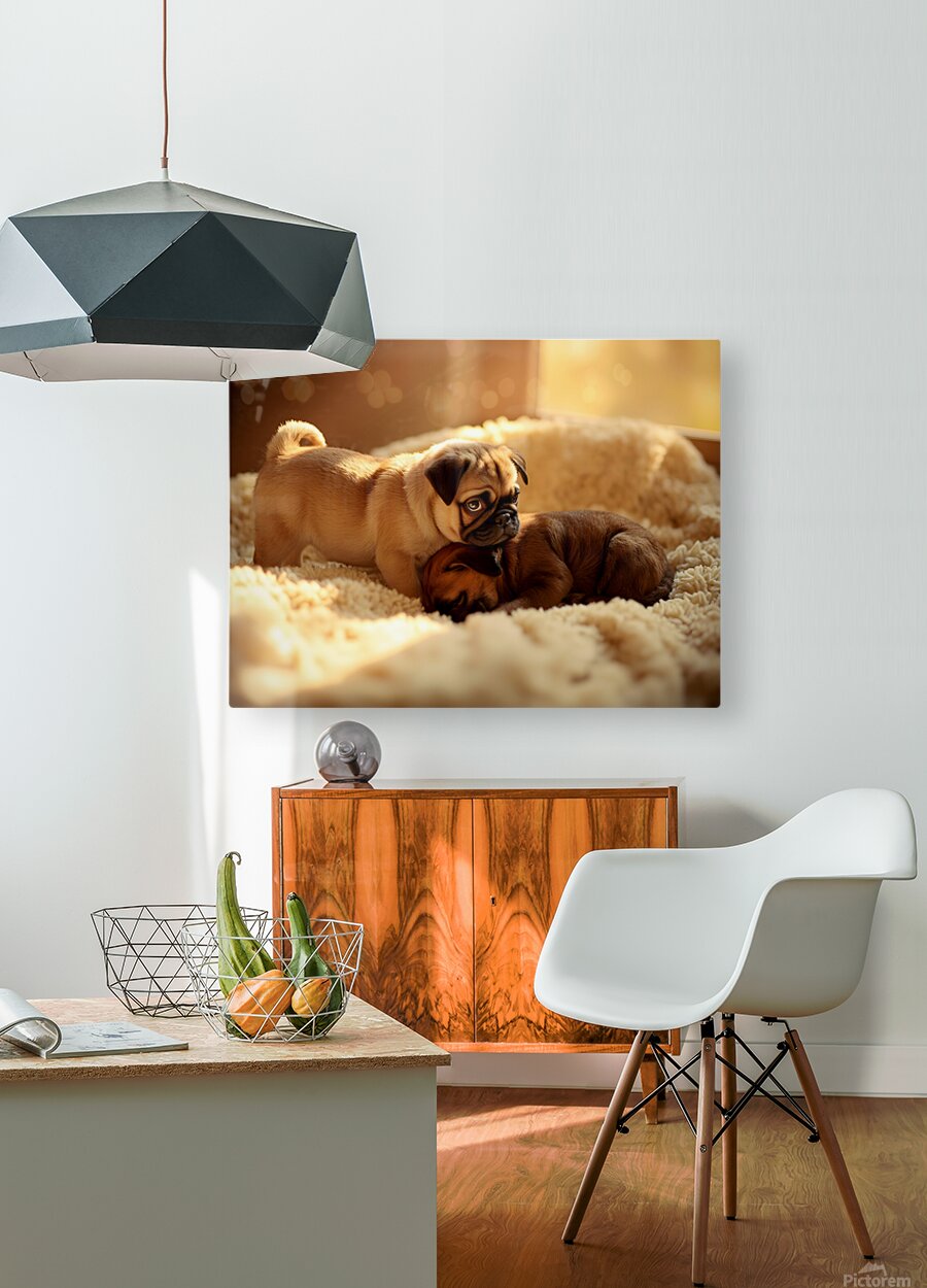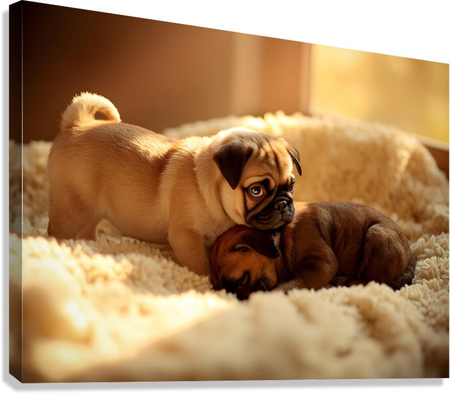 Pug Puppy Gently Wakes Sleeping Friend Canvas print