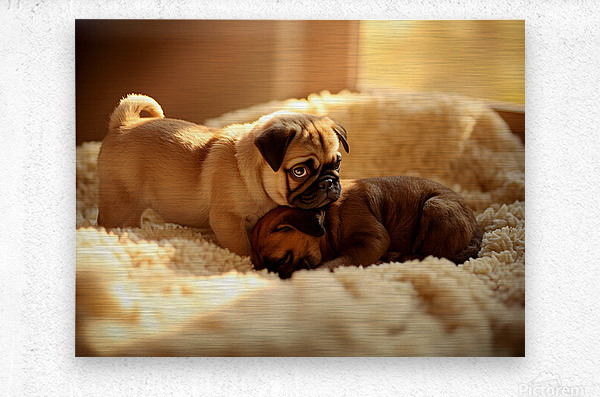 ABOUT THIS ARTWORK: PUG PUPPY GENTLY WAKES SLEEPING FRIEND