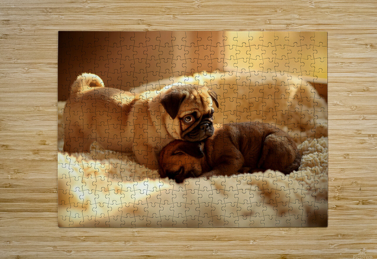 Pug Puppy Gently Wakes Sleeping Friend Puppy Prints Puzzle printing